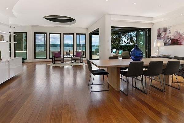 Hầu hết các công trình sàn gỗ sẽ là tông chủ đạo, như vậy các yếu tố như tường, sofa, tủ bàn… xoay quanh để tạo sự hài hòa.